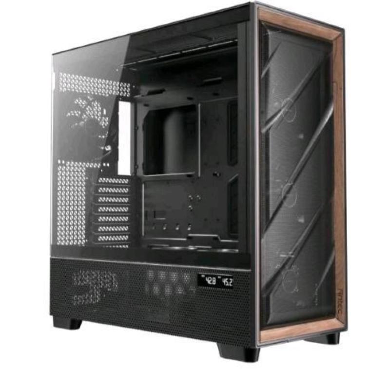 - Antec flux pro full tower e-atx atx, micro-atx, itx frontale alto flusso con inserti in legno di noce pannello laterale trasparente nero
