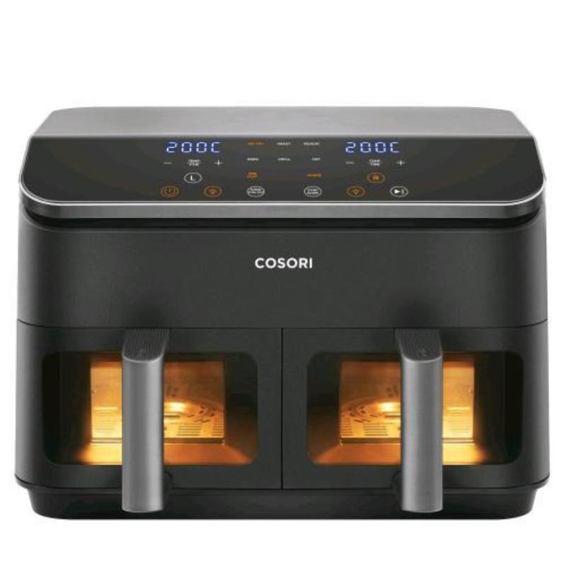 Cosori r901 dual basket friggitrice ad aria 8.5 lt 1750w doppio cestello 8 funzioni di cottuta con finestra trasparente e timer nero argento