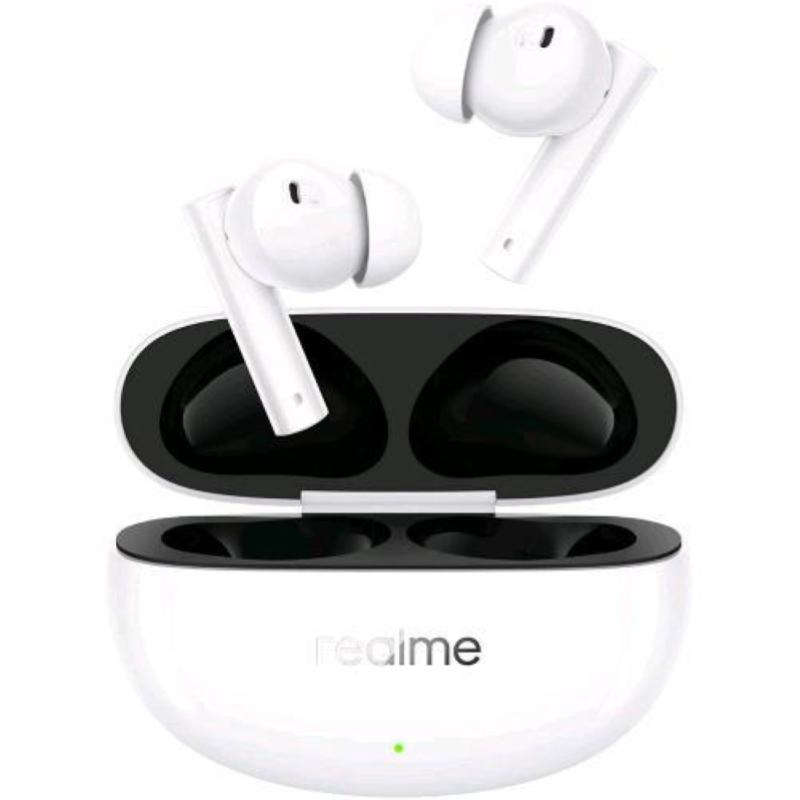 Realme air 5 ear buds cuffie auricolari bluetooth 5.3 cancellazione attiva del rumore fino a 50 db 2.0 - mega driver titanizzato da 12,4mm 6 microfoni custodia di ricarica ipx5 bianco